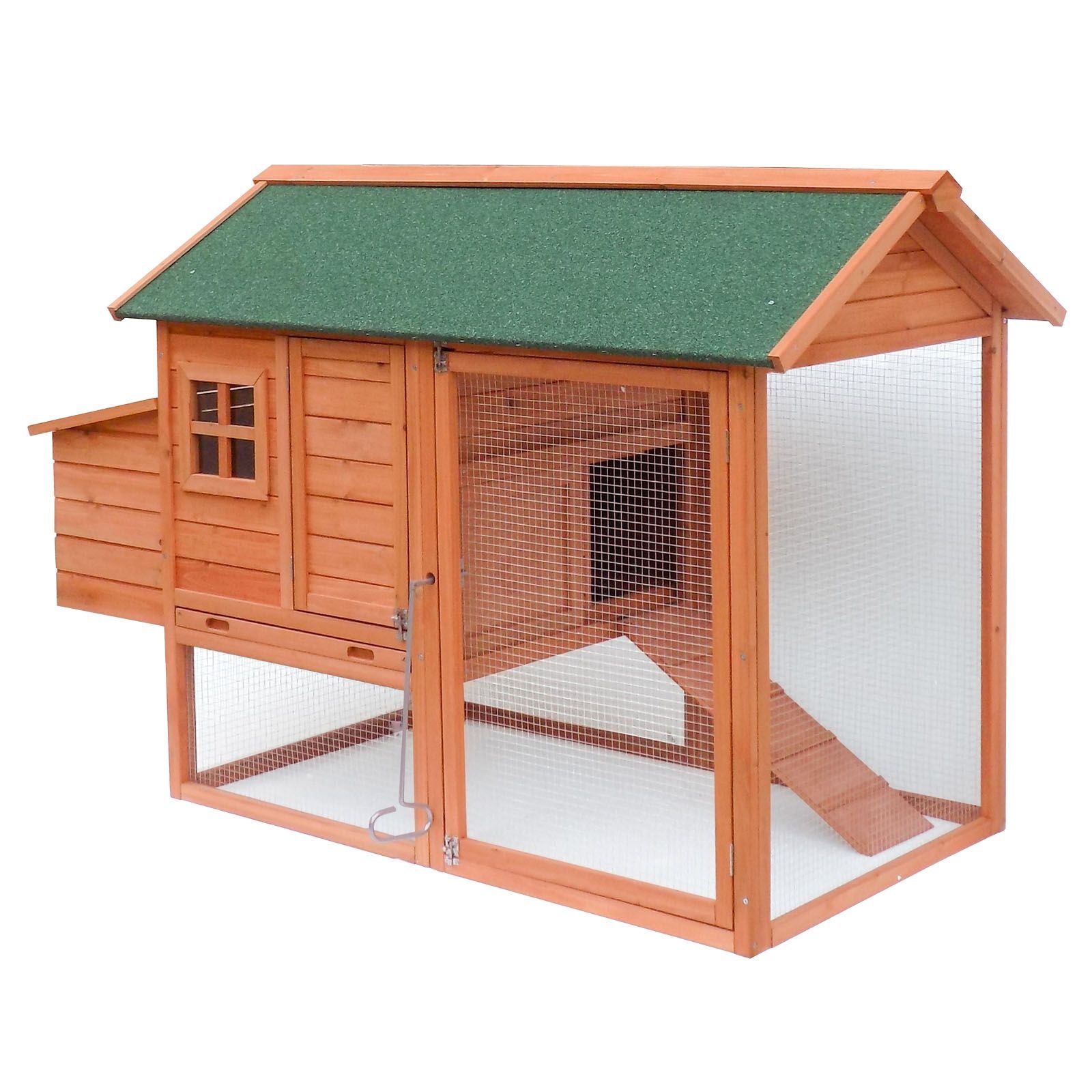 Cotețul de pui este realizat din lemn de molid si are o dimensiune exterioara de 171 x 80 x 110 cm. Casa de dormit integrata oferă biban iar acoperișul din lemn bine etanșat este izolat cu bitum, astfel încât întreaga cota de găini sa fie ferita de ploaie. Curățarea ușoară și igienă este posibilă prin tava de gunoi din tablă zincată, care poate fi scoasă. O rampă antiderapante leagă zona exterioară de casă. Pentru ca toate zonele coteței să poată fi atinse pentru curățare sau inspecție de cuib, caseta de cuibar are un acoperiș cu balamale, iar coșul și ruloul liber sunt echipate fiecare cu o ușă.