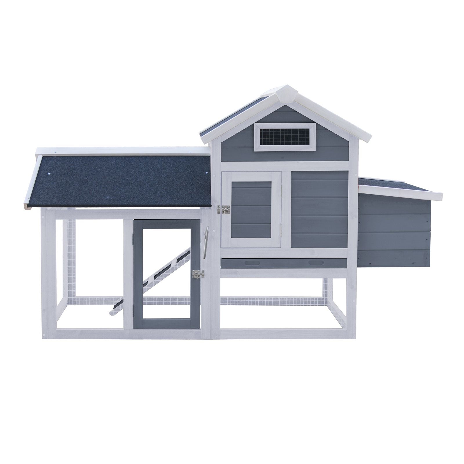Coșul mare de găini are o dimensiune exterioară de 152 x 52 x 92 cm (Lxlxh). Puii ajung la etaj printr-o rampă cu trepte de lemn. Atunci când animalele trebuie să părăsească grajdul, se poate deschide ușa mare către cursa liberă. Podeaua poate fi trasă pentru o curățare ușoară a casei. Există o tavă galvanizată pentru gunoi de grajd care este ușor de curățat și dezinfectat.