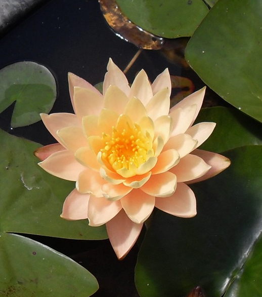 Nymphaea Clyde Ikins, Nufăr. Înflorește mari intense de culoarea piersicii.