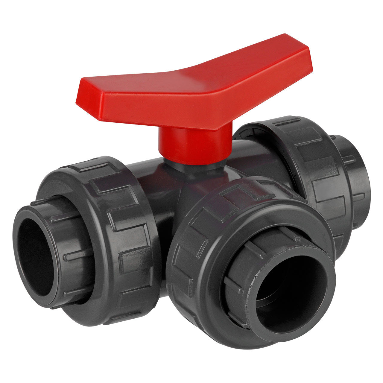 Informații despre produs „Supapă cu sferă PVC-U cu 3 căi T-bore 3x manșon adeziv”