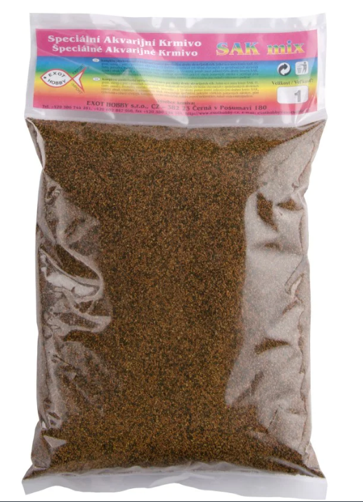 Furaj complet extrudat pentru toate speciile de pești ornamentali. Este un amestec de SAK 55, verde, energie și aur în proporția corespunzătoare unei configurații comune de acvariu (tetra, mreana, ciclide vii, pești labirint etc.) Proporția echilibrată din toate soiurile SAK, conținutul ridicat de vitamine și minerale asigură creșterea rapidă și dezvoltarea sănătoasă a peștilor. Foarte digerabil, moale, nu tulbură apa și nu se dezintegrează.
