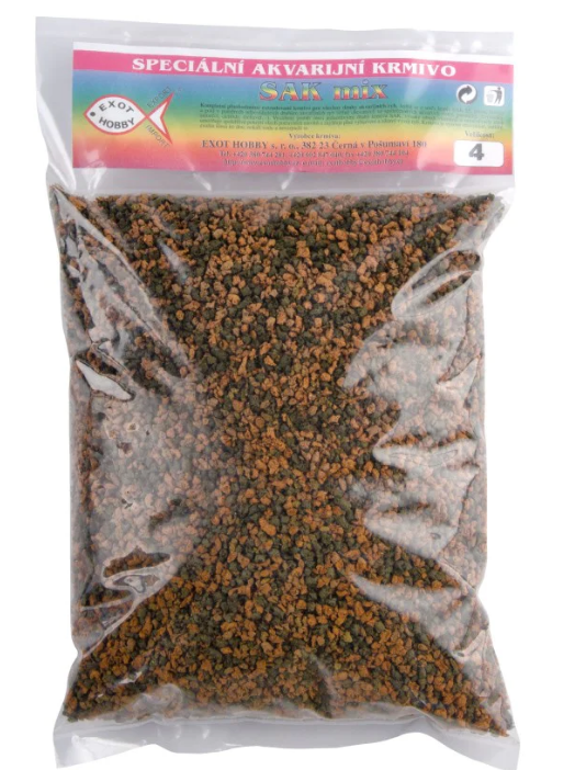 Furaj complet extrudat pentru toate speciile de pești ornamentali. Este un amestec de SAK 55, verde, energie și aur în proporția corespunzătoare unei configurații comune de acvariu (tetra, mreana, ciclide vii, pești labirint etc.) Proporția echilibrată din toate soiurile SAK, conținutul ridicat de vitamine și minerale asigură creșterea rapidă și dezvoltarea sănătoasă a peștilor. Foarte digerabil, moale, nu tulbură apa și nu se dezintegrează.